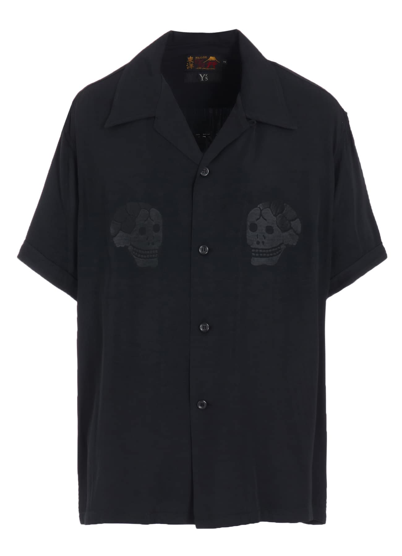 23秋冬シーズンに発表したワイズとテーラー東洋によるスカジャンコレクションの刺繍を再現したスカシャツを展開。テーラー東洋が所蔵するヴィンテージの中からワイズが選んだ絵柄で構成したインパクトのあるドクロと蛇ををオールブラックで表現。古いスカシャツについているような後ろ身頃のアクションプリーツなど、特徴的な要素はキープされ、丈を長めに、体と服の間に空気が入る、ワイズらしい型に調整されたシルエット。ユニセックスでお召しいただけます。