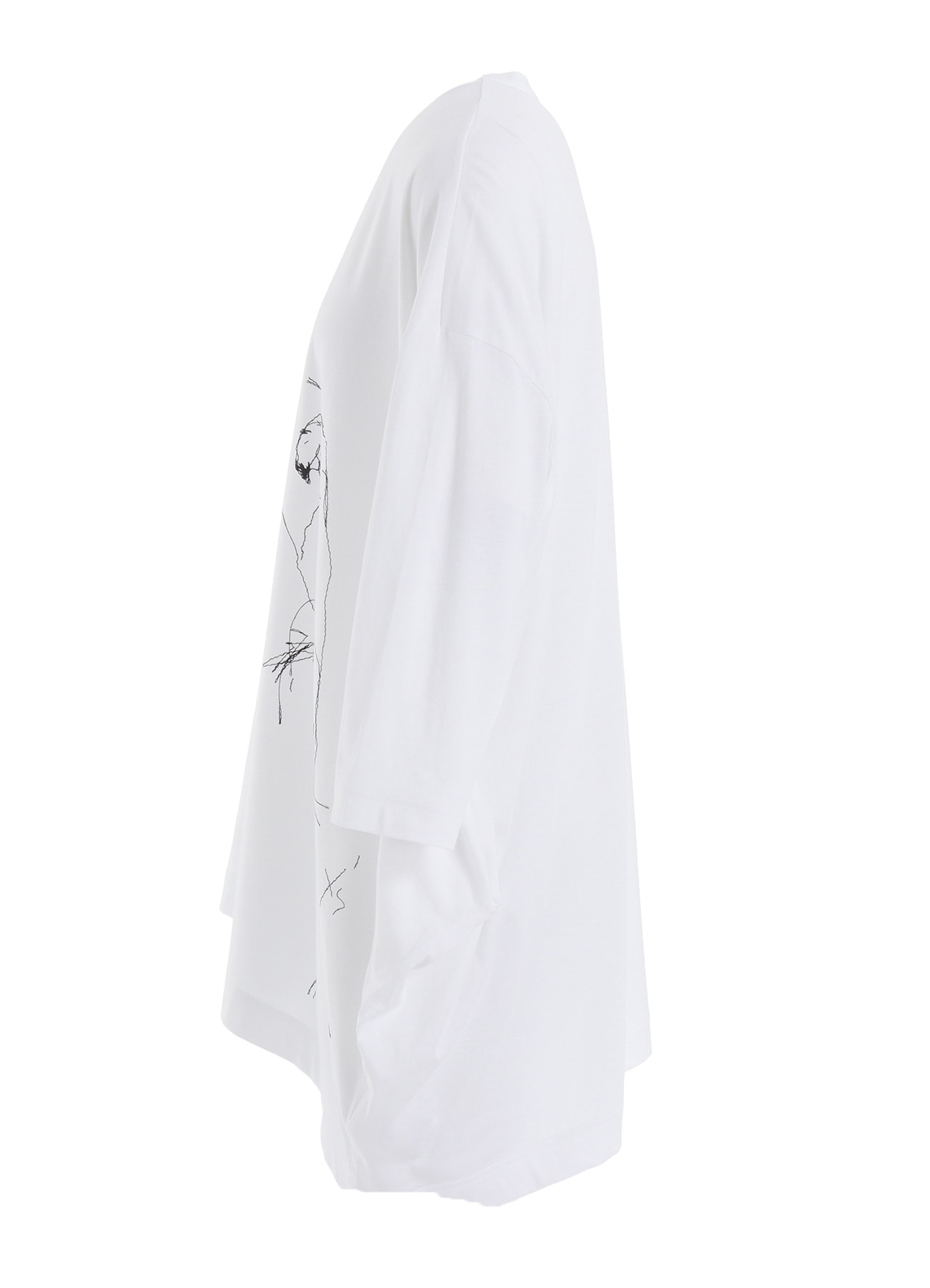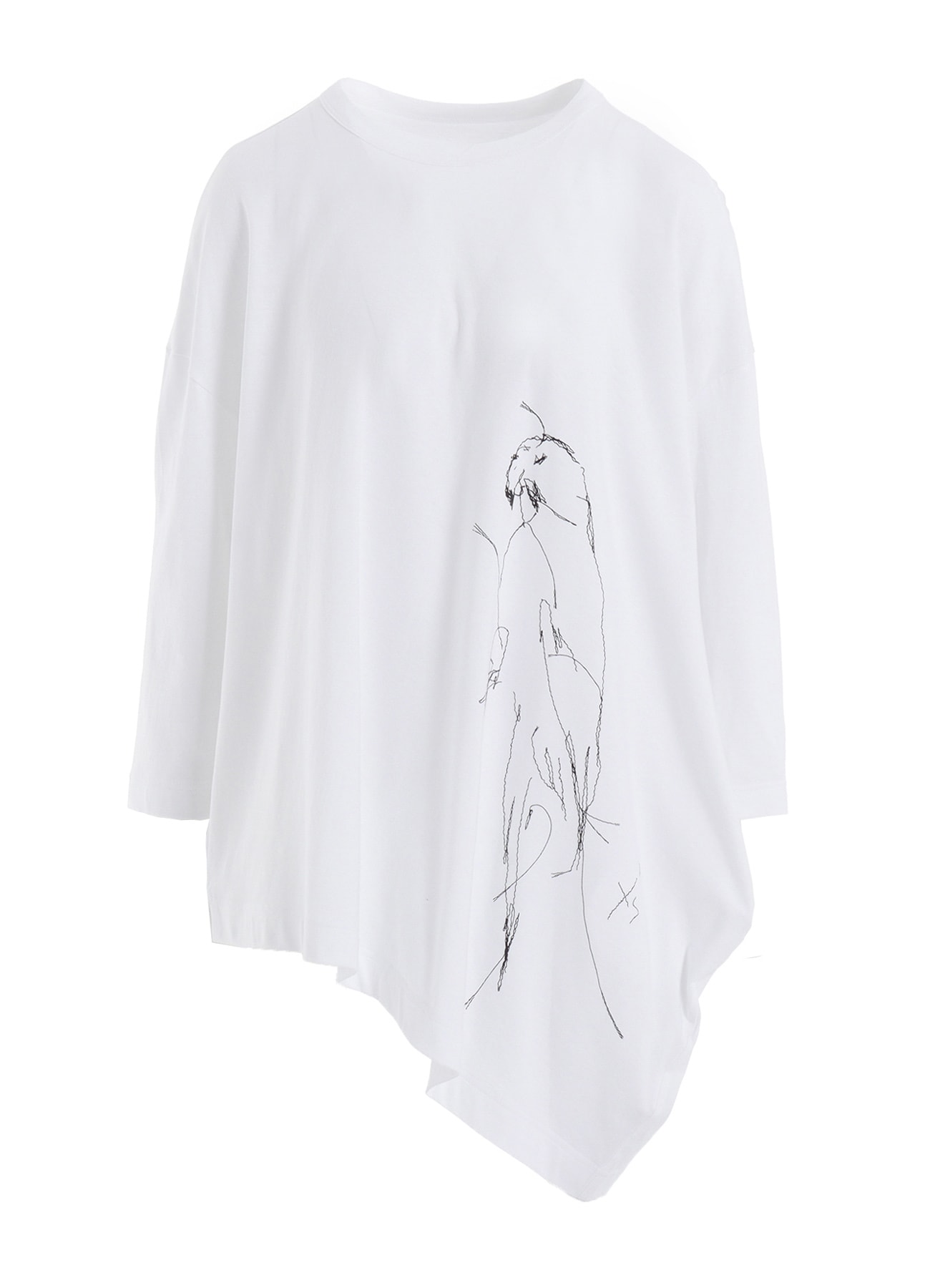 刺繍のように見える発泡プリントが個性的なカットソー。Y'sで定番的に使用している左脇にポケットのあるアシンメトリーのシルエットに、デッサン画のようなラフなタッチの鳥とY’sの文字さりげなくがプリントされています。長袖よりは短めの袖丈と、ゆったりとしていながらすっきりと見えるシルエットですので、パンツはもちろんロングスカートとのコーディネイトもおすすめです。