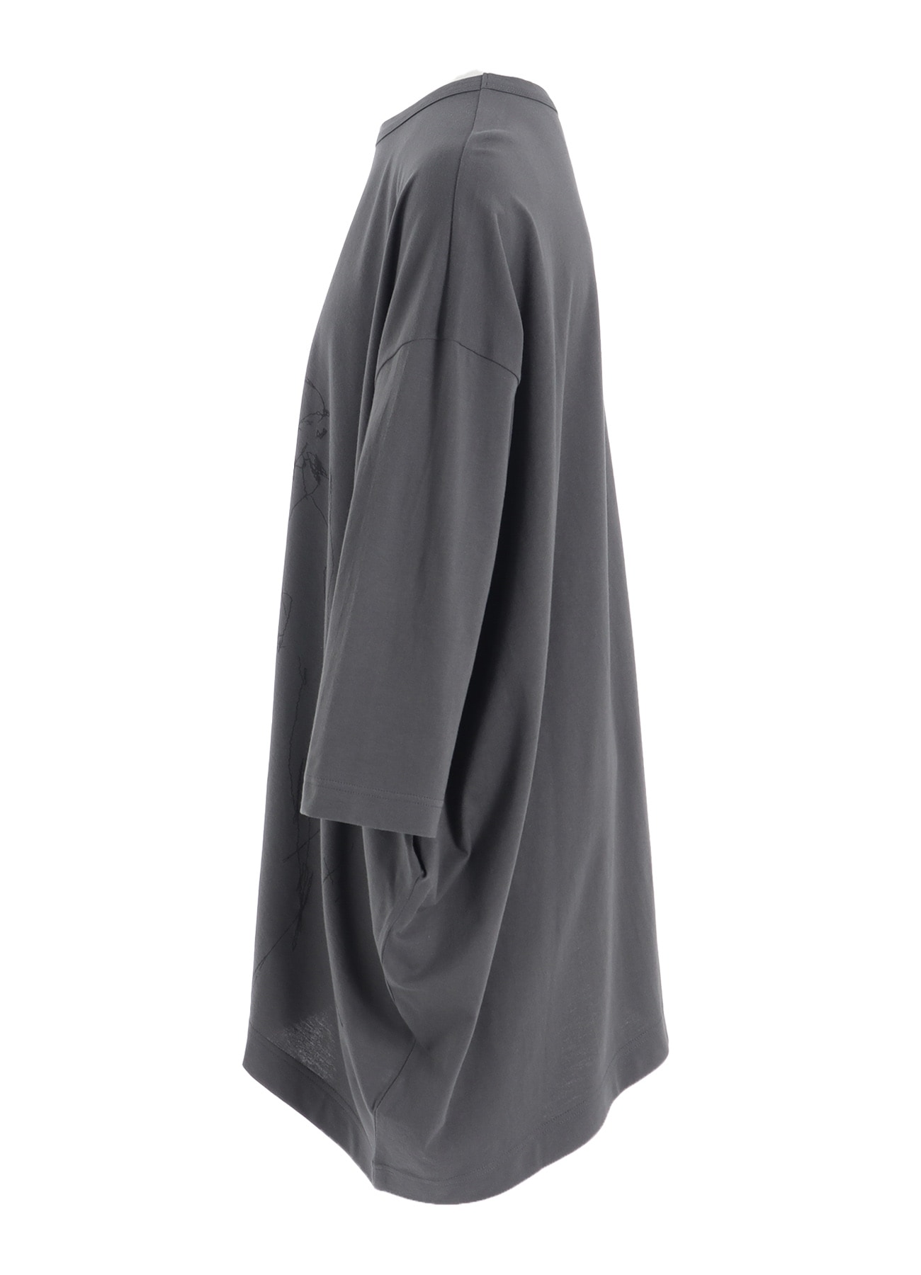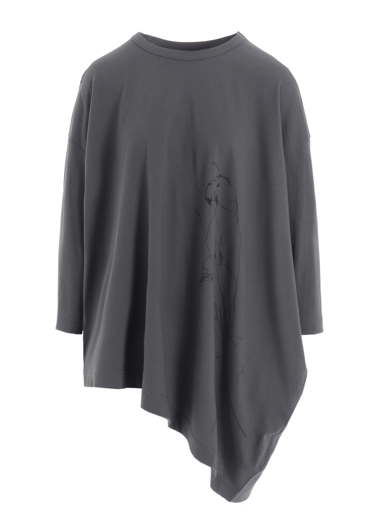 刺繍のように見える発泡プリントが個性的なカットソー。Y'sで定番的に使用している左脇にポケットのあるアシンメトリーのシルエットに、デッサン画のようなラフなタッチの鳥とY’sの文字さりげなくがプリントされています。長袖よりは短めの袖丈と、ゆったりとしていながらすっきりと見えるシルエットですので、パンツはもちろんロングスカートとのコーディネイトもおすすめです。