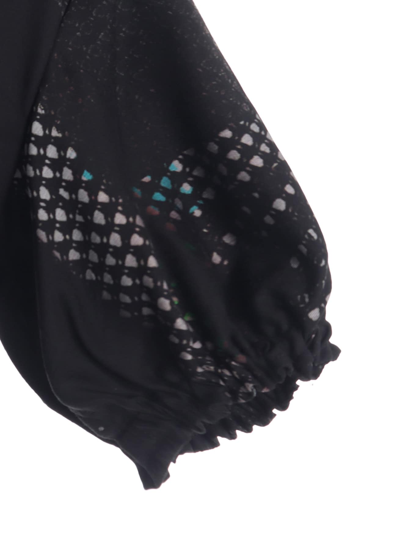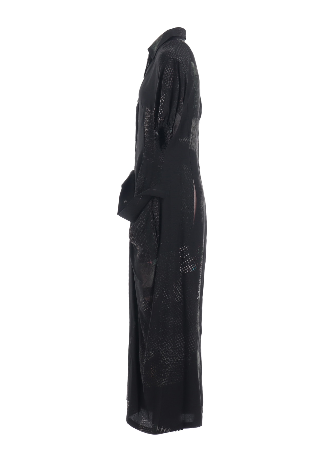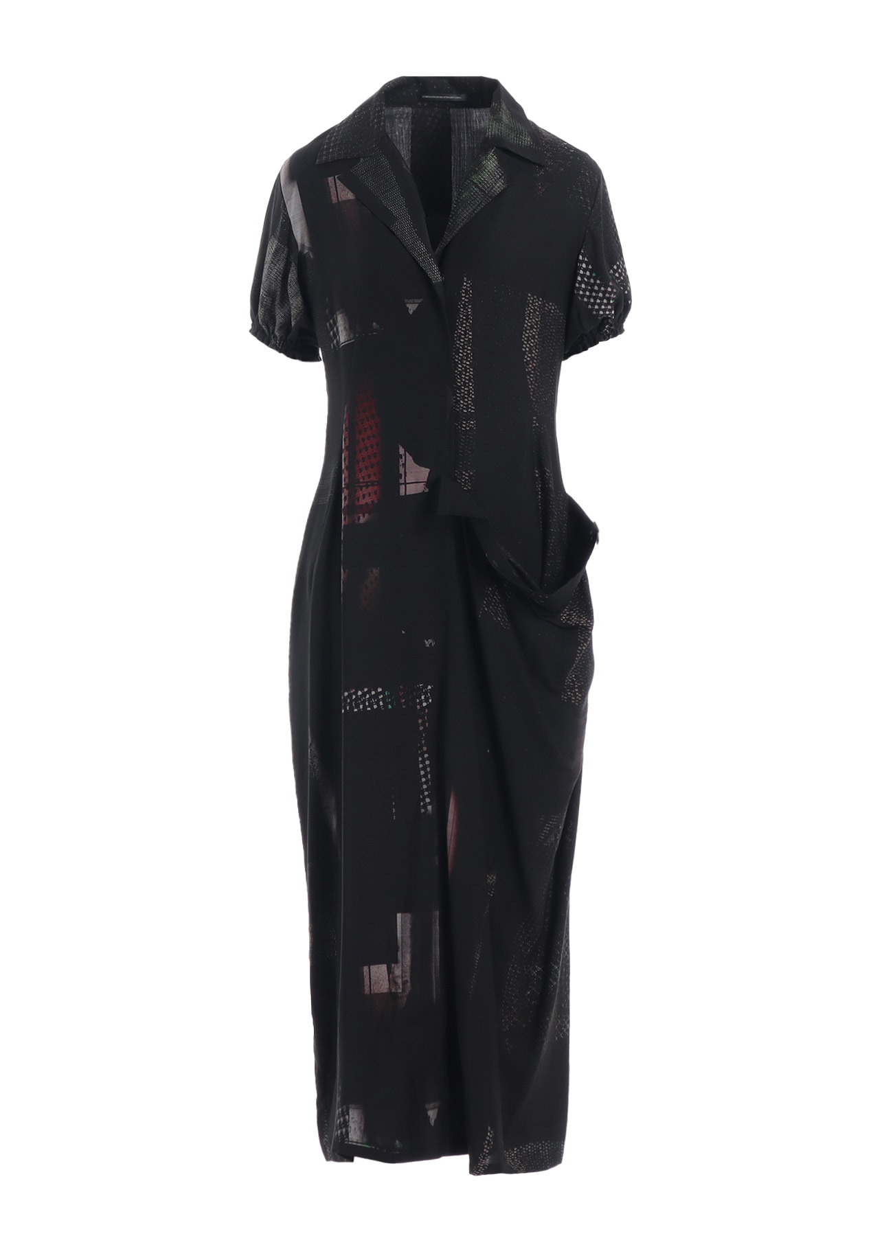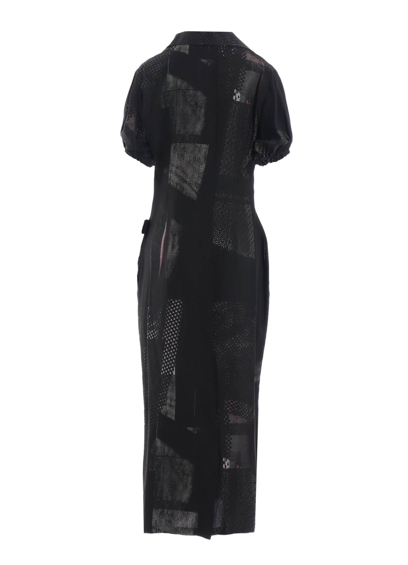 ¥143000キュプラ素材の左ギャザードレス。暗闇にチェック柄が浮かび上がるように表現された柄。パフスリーブと左サイドに振らされた布が、緩やかに膨らんだ輪郭をつくります。モデル着用画像はサンプルアイテムを使用しています。製品とサイズや風合いが異なる場合がございます。詳しくはSIZE INFOをご確認下さい。