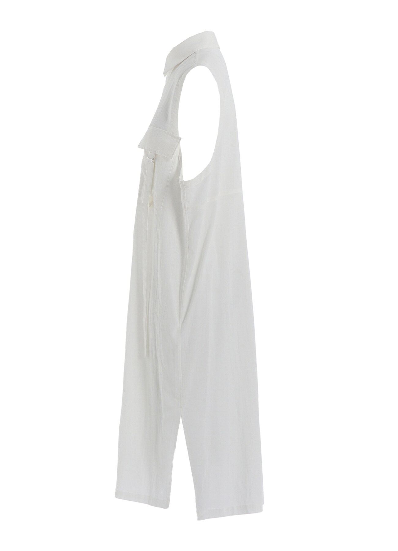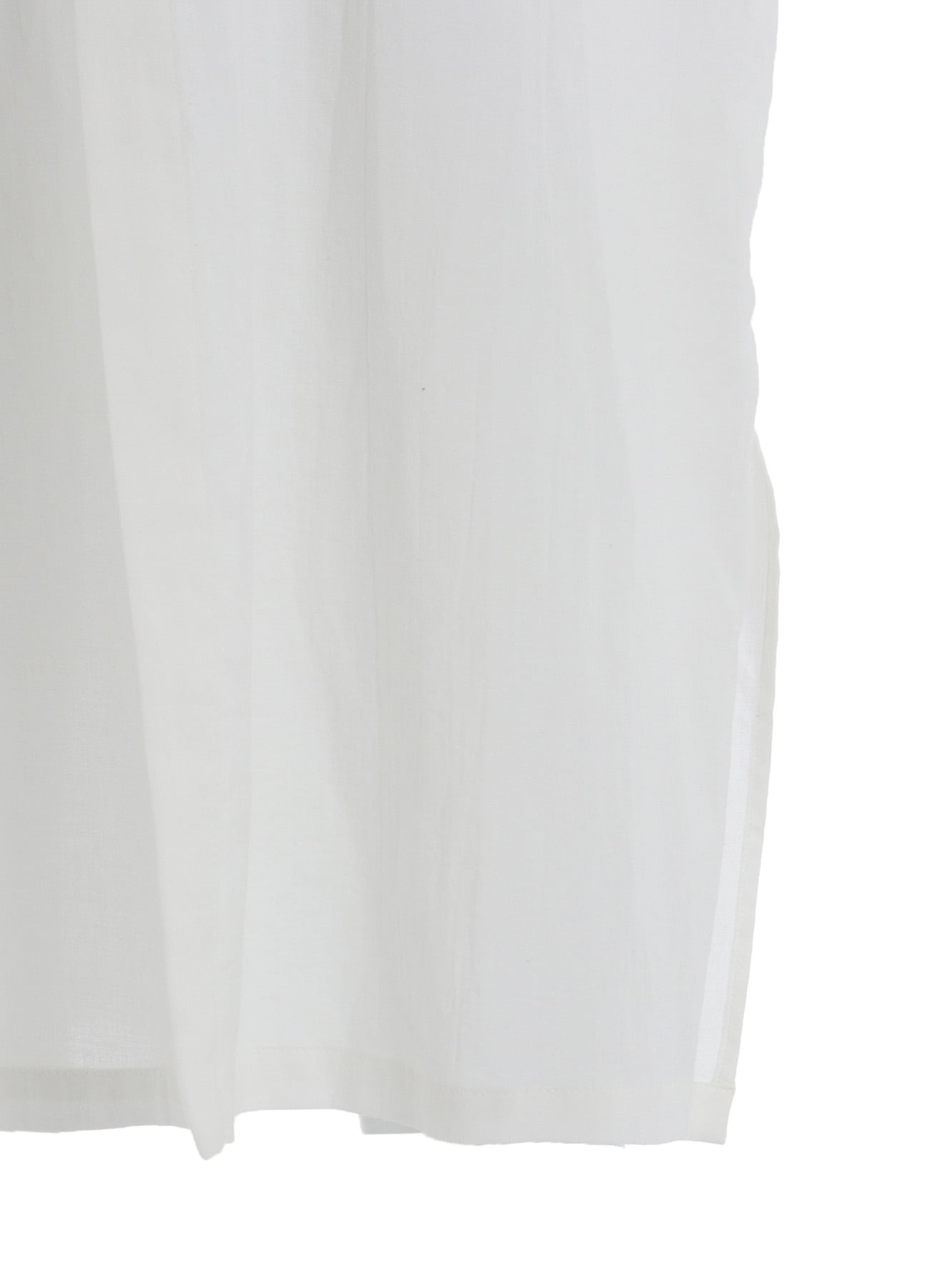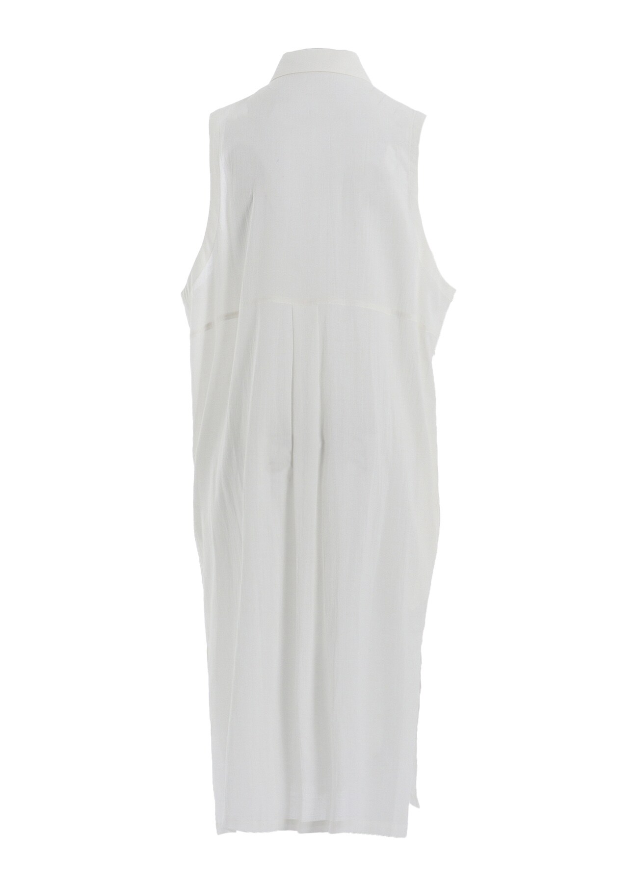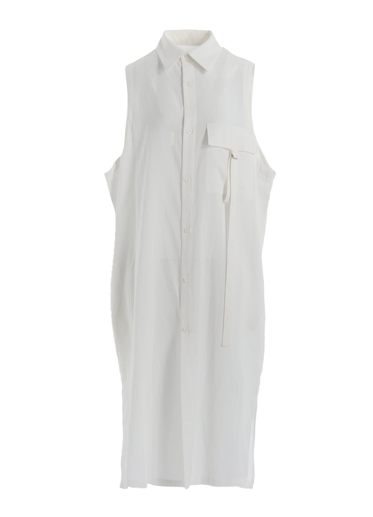 ¥72600コットンボイルビエラ生地のノースリーブシャツドレス。膨らみ感のあるソフトな風合いが特徴的な生地。脇のスリットは長めにあいており、パンツやスカートとの重ね着がおすすめです。