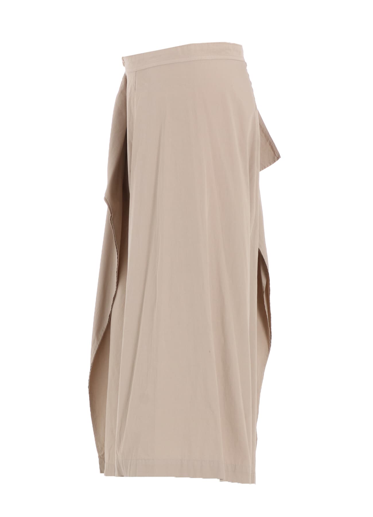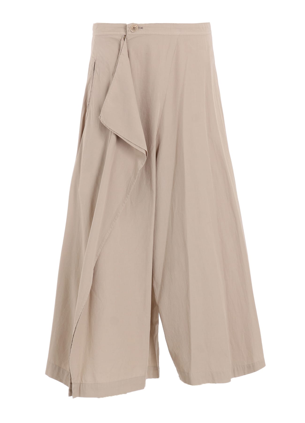 ¥59400コットンブロード生地のスカートパンツ。薄手ながら透けにくくハリのある生地に、製品染め加工をほどこしています。フラシ部分がスリットになっており、動きのある軽快な雰囲気に。製品加工により、色の出方や風合いには若干の個体差がございます。ご了承ください。