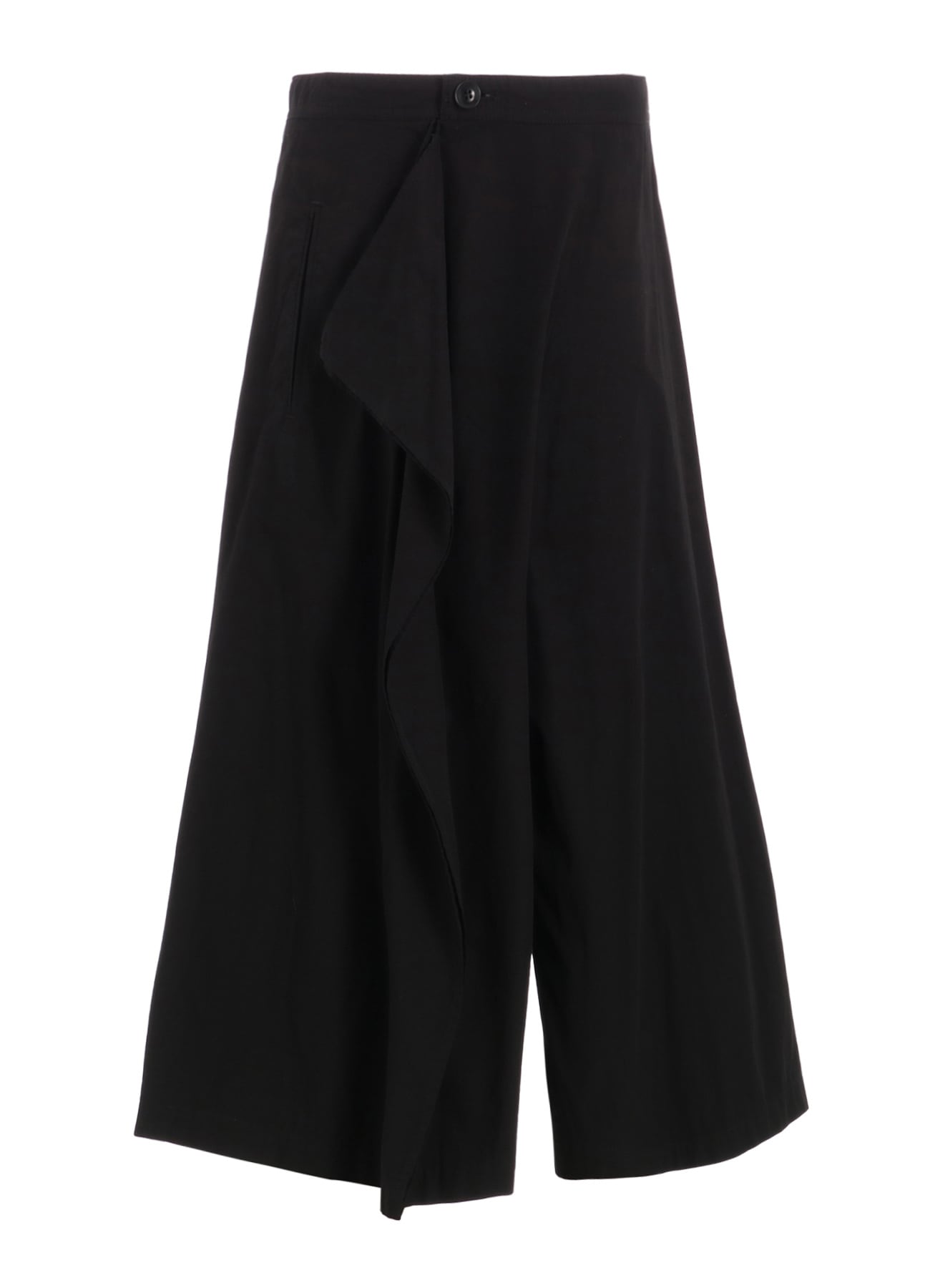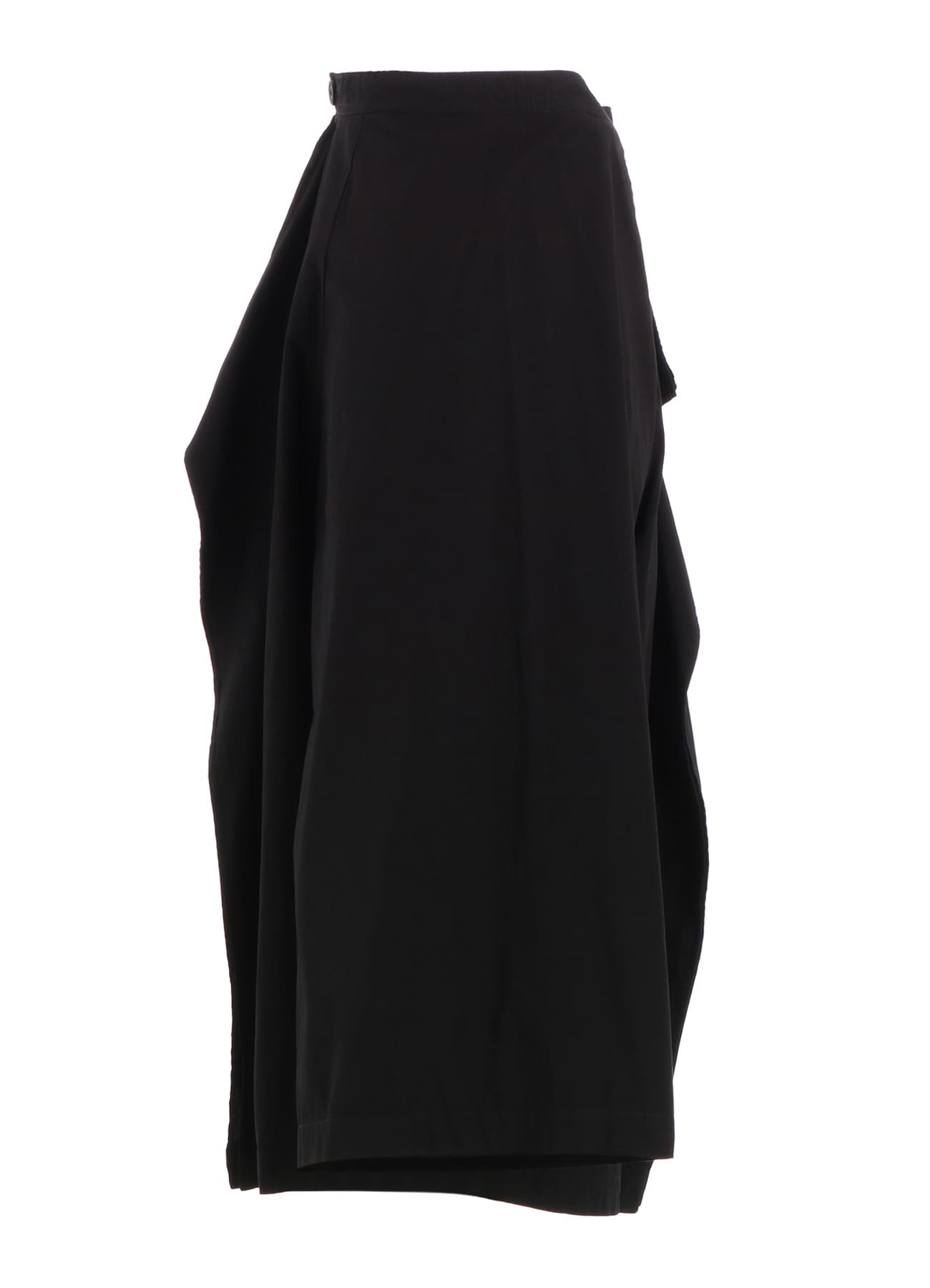 ¥59400コットンブロード生地のスカートパンツ。薄手ながら透けにくくハリのある生地に、製品染め加工をほどこしています。フラシ部分がスリットになっており、動きのある軽快な雰囲気に。製品加工により、色の出方や風合いには若干の個体差がございます。ご了承ください。