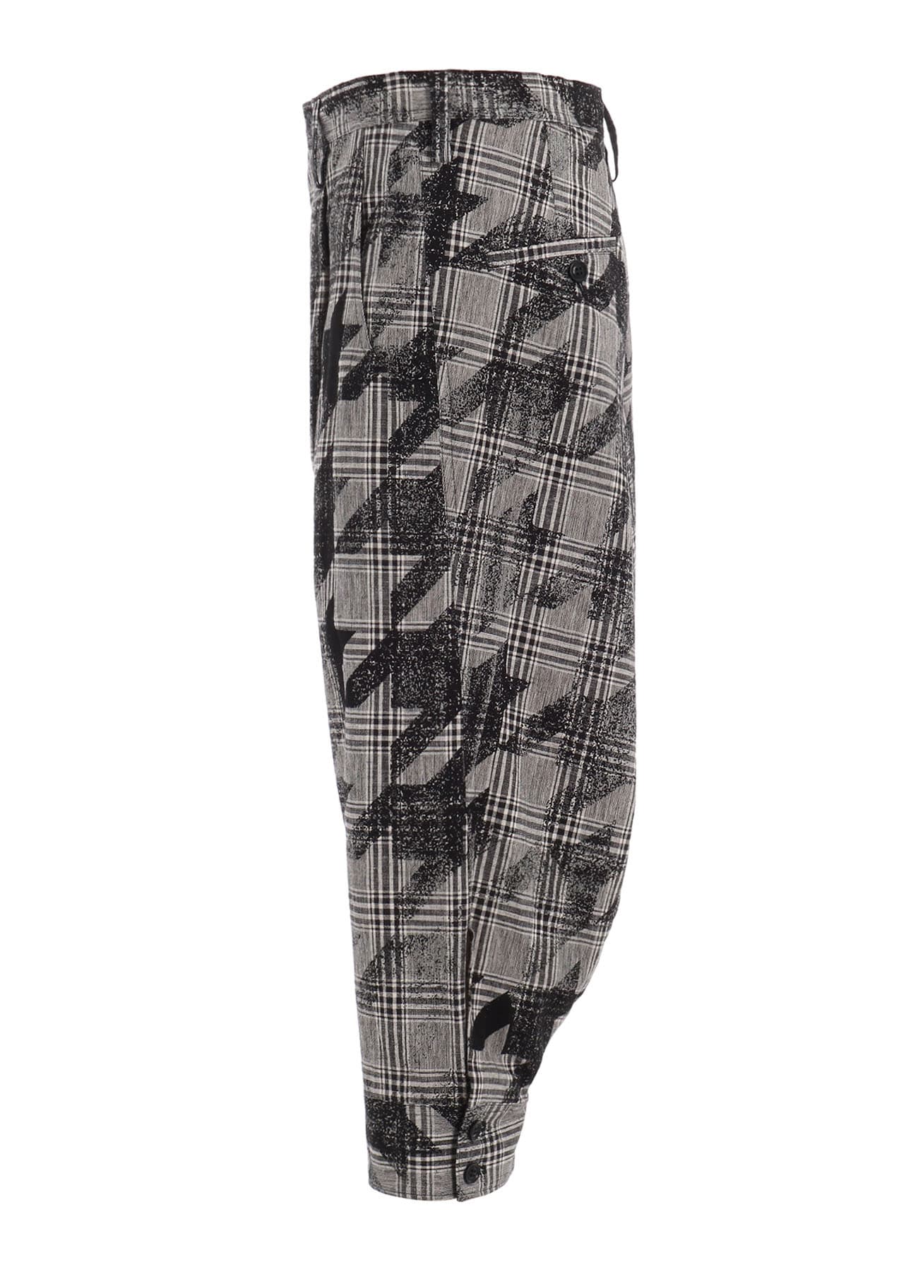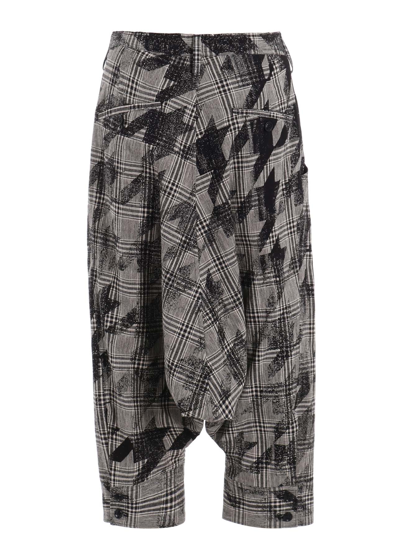 ¥83600チェックに千鳥格子を重ねた柄のサルエルパンツ。コットンリネンの生地は手作業の洗いざらしにより、天然素材の風合いを最大限に活かしたナチュラルな仕上がりに。裾にカフスが付いた短めのサルエルパンツで、ふくらはぎの辺りにはスリットがデザインされています。この製品は、製品霧吹きをしているため、商品により風合いに若干の個体差がある場合がございます。ご了承ください。