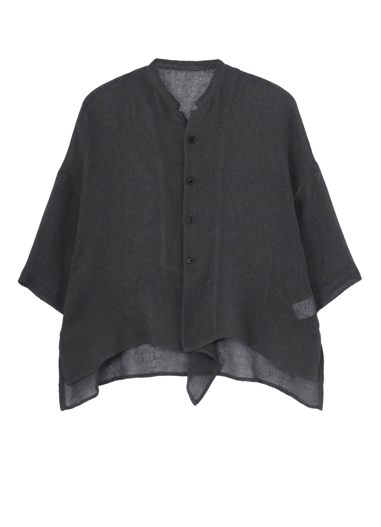 ワイズ定番人気のカラミ織を使用した半袖ブラウス。風が抜けるような清涼感のある素材で、見た目も涼しくお召しいただけます。身幅が広く、ボックスシルエットのシャツは、短めの丈感で分量感のあるボトムともバランスよくお召しいただけます。