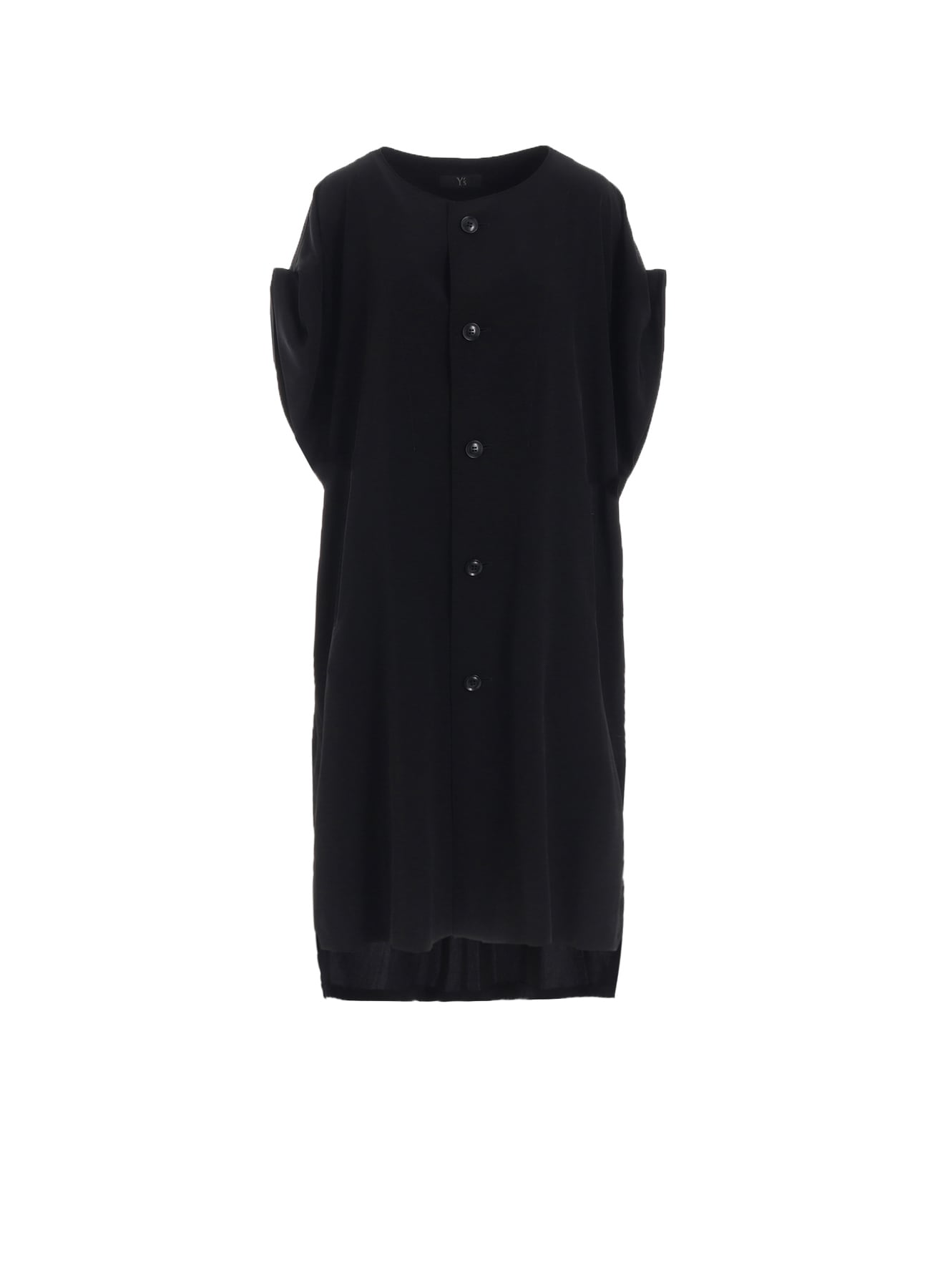 定番人気のトリアセテート・ポリエステルデシン生地を使用したドレス。マイルドな光沢感と高級感のある生地はシワになりにくく、さらっとした軽い着心地でシーズンを通してお召しいただけます。ドロップショルダーで肩から身頃にかけてのラインは柔らかく、折り返した袖が直線的でアクセントに。前開きなのではおりとしてもおすすめです。