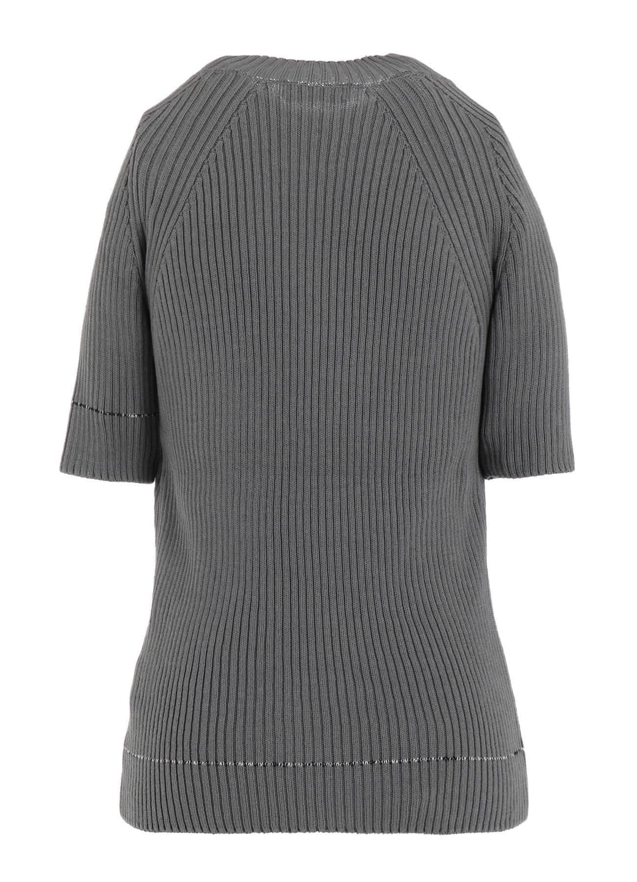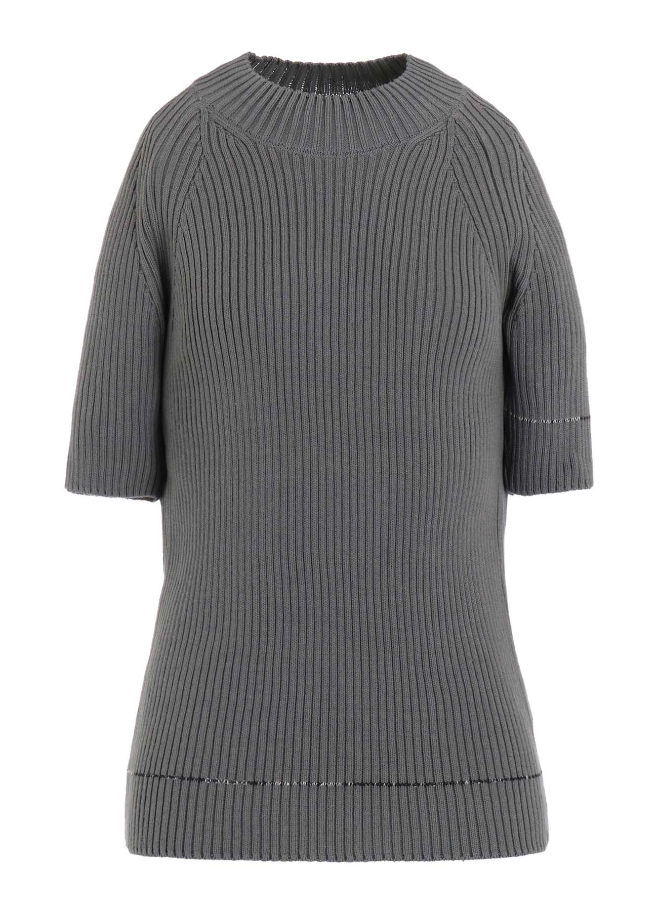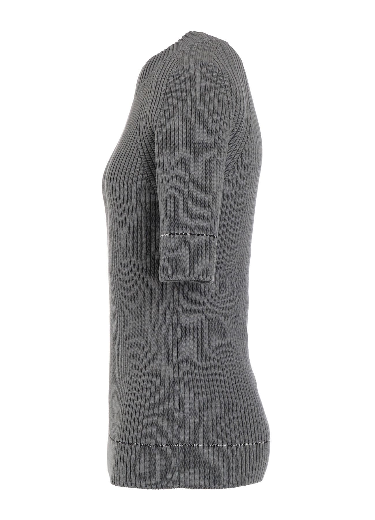 RIB STITCH TWISTED HALF SLEEVE RIB PULLOVER