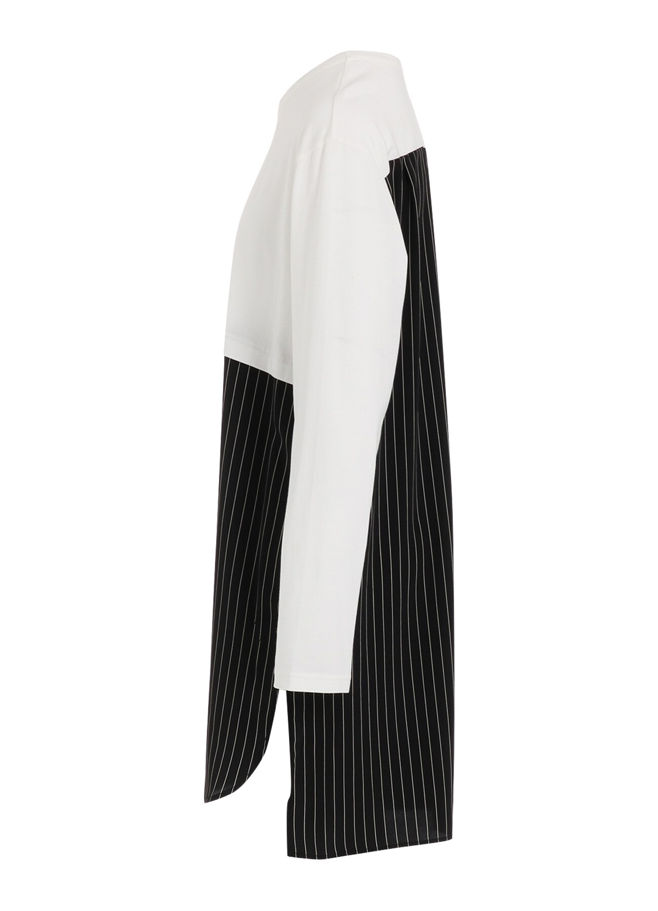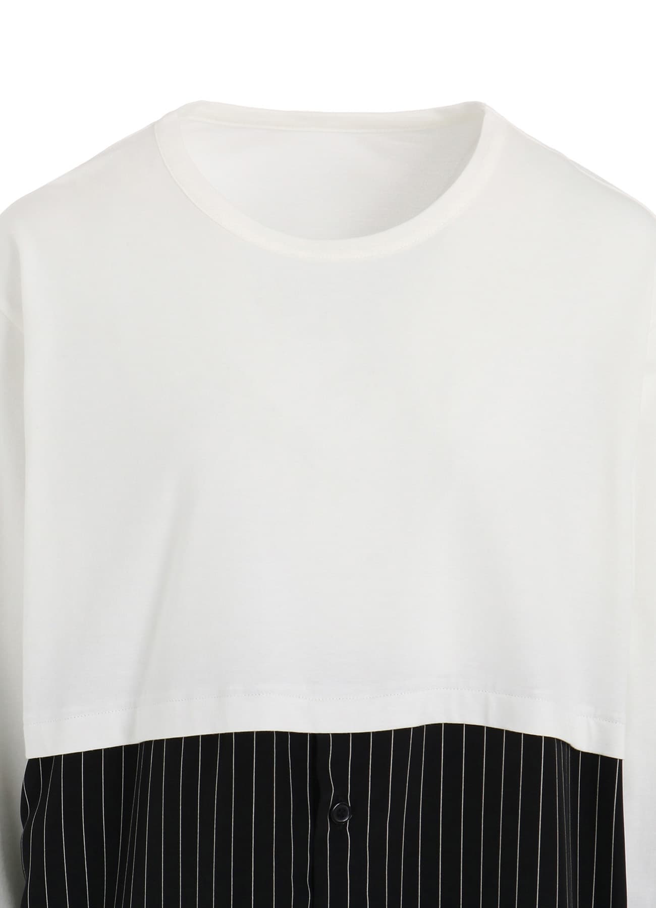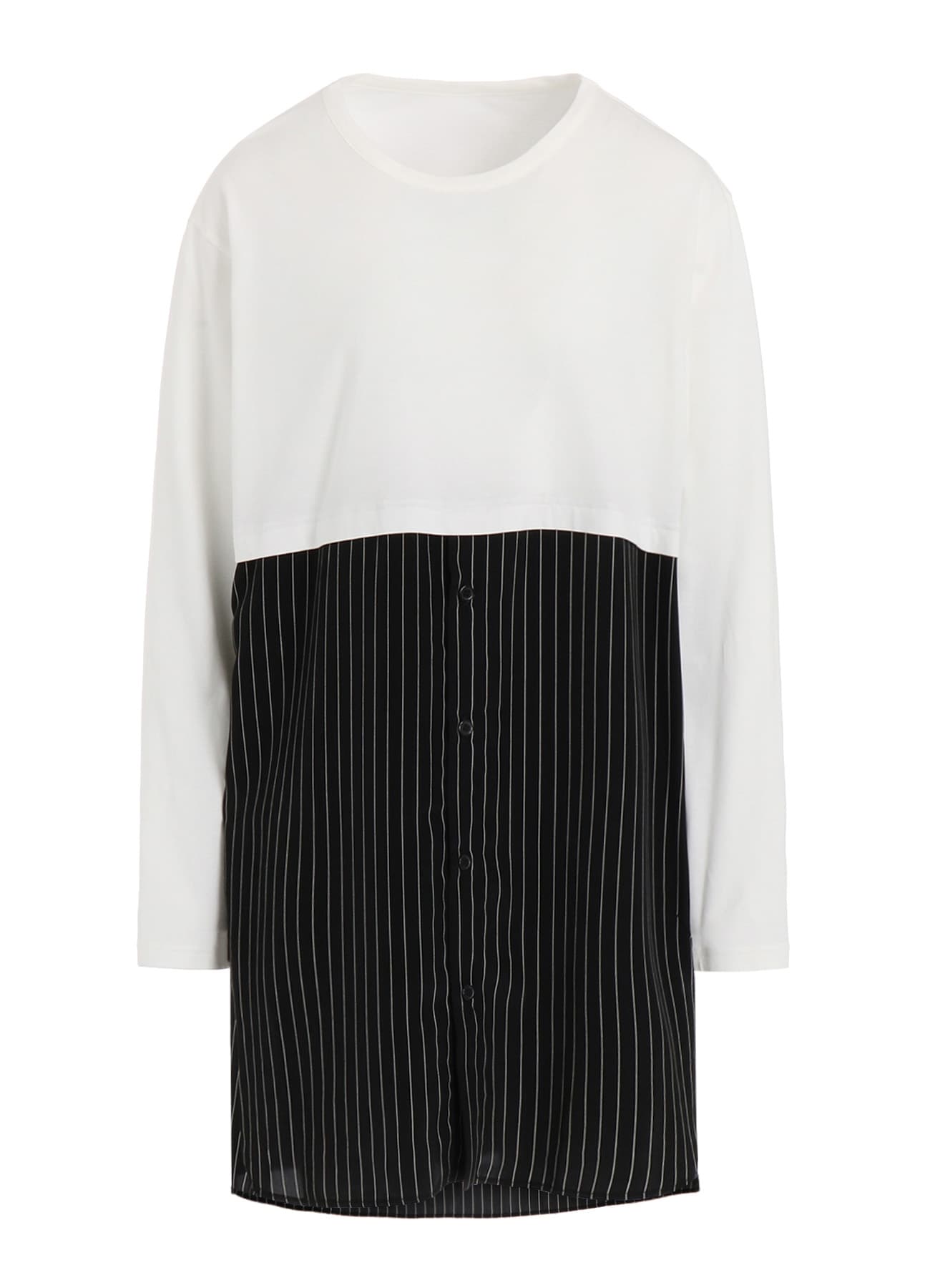 ¥52800カットソー生地にストライプ柄のポリエステルデシンを組み合わせた長袖カットソー。インナーを気にせず1枚でお召しいただける程よい厚さ。肌触りが良く、春夏におすすめのアイテム。