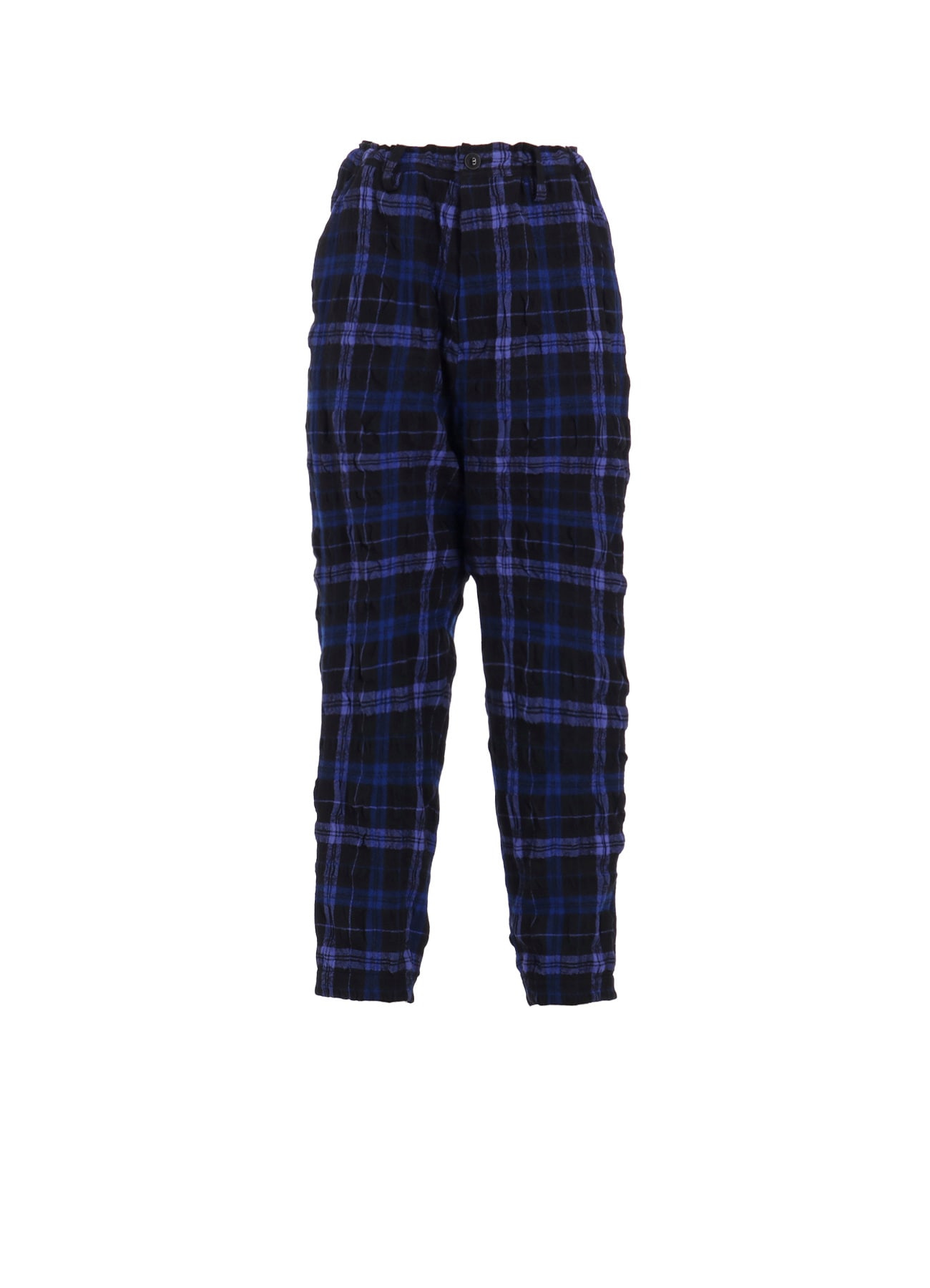 Y’s Boiled Wool / Plaidウール素材のチェック柄パンツ。ウールとコットンで織り上げたチェック柄をタンブラー縮絨することで、素材の縮絨差によって立体的な生地に仕上がっています。