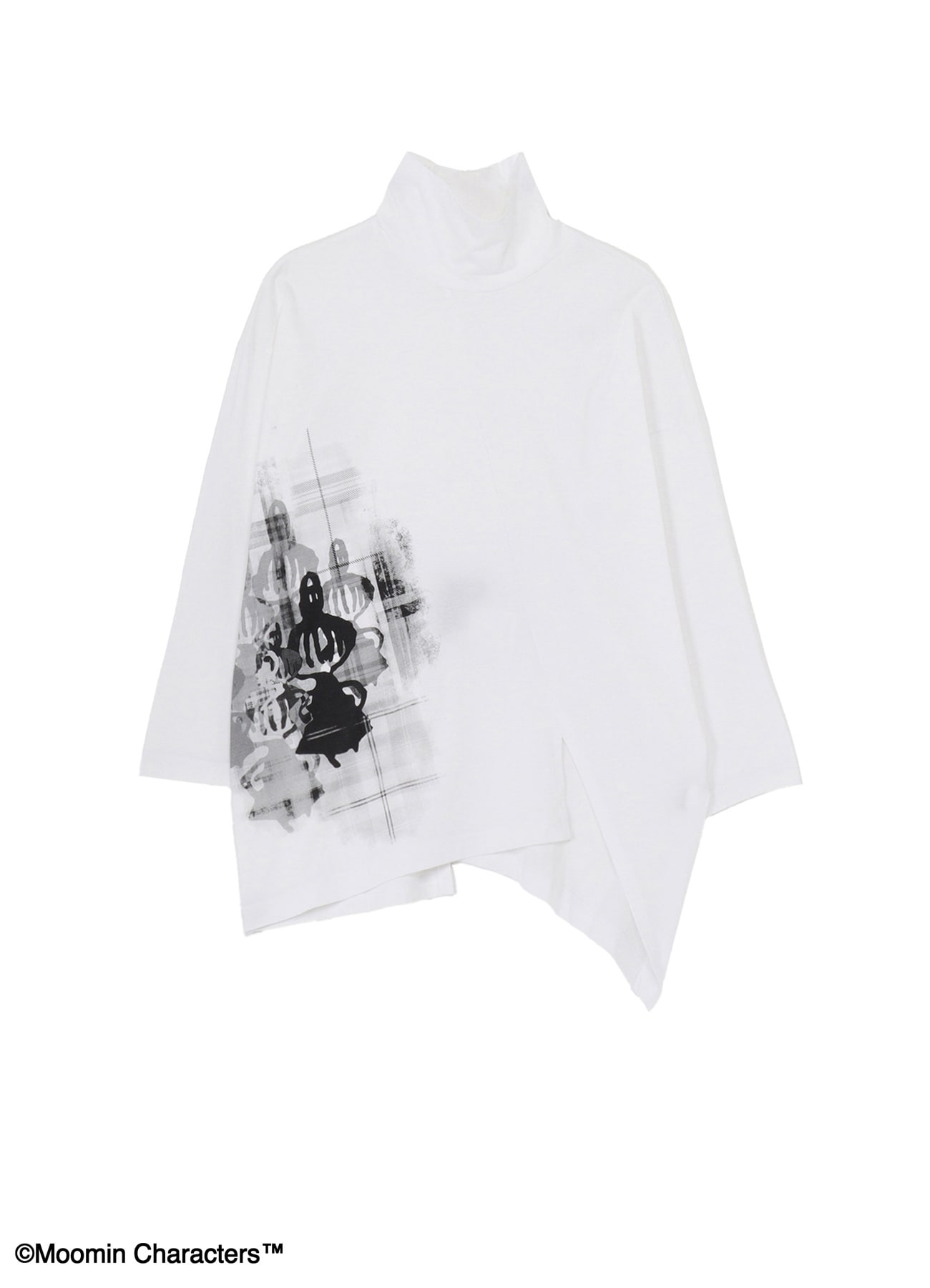 Y’s for livingのプロジェクトブランド「a part of me.」と「MOOMIN」のコラボレーション企画「MOOMIN × a part of me.」。Y’sのフィルターを通して表現された特別なコレクション。変形したネックと、シルエットが特徴のハイネックカットソー。リトルミイのランダムな残像と擦れたチェック柄を組み合わせてプリントしました。ほど良い肉厚感の天竺素材です。