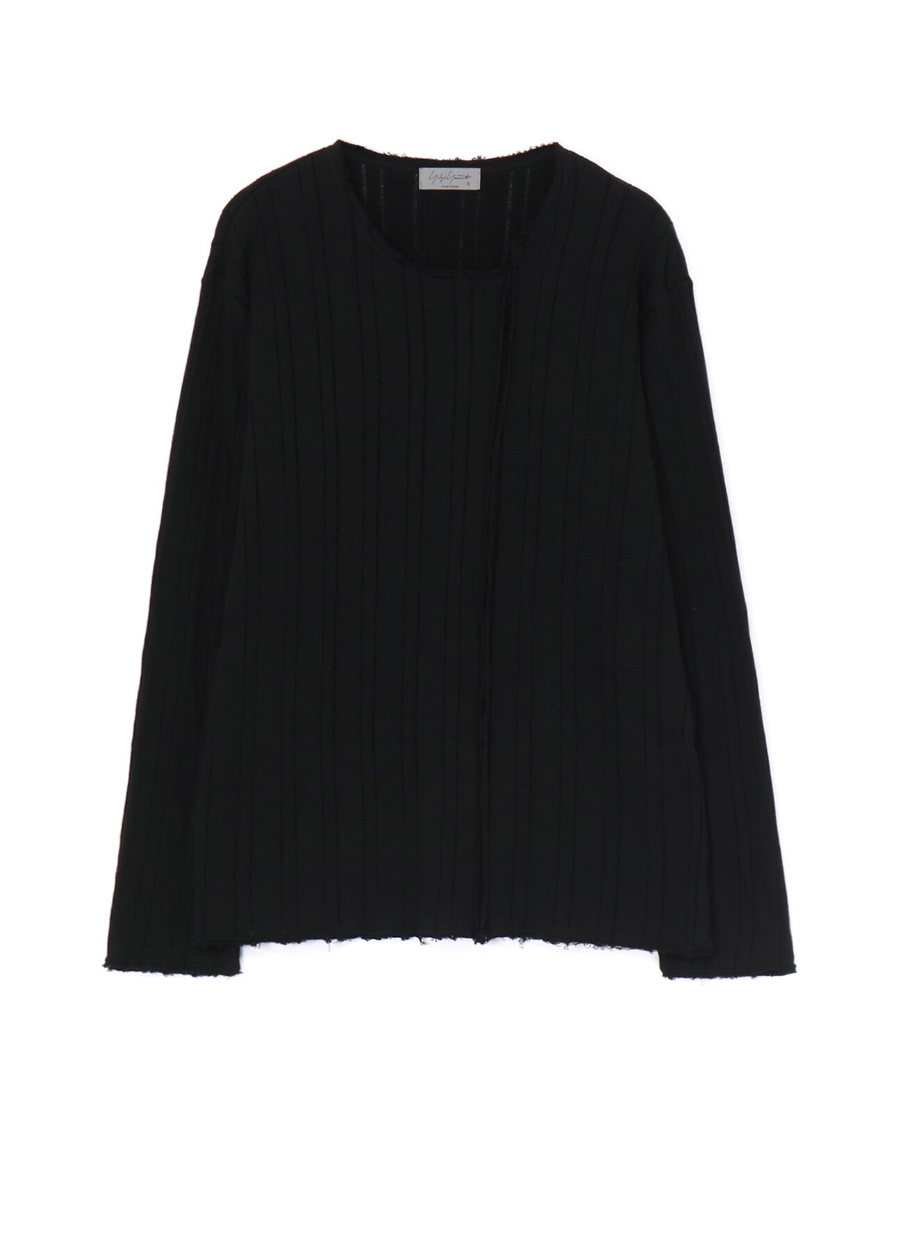 素材の雰囲気を活かし、針抜き裁ち切り長袖カットソーやタックキャスケットを合わせ、バランスを整えています。