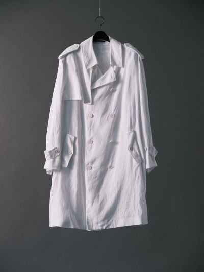 白、黒、グレーといった無彩色で染めたリネン素材を用いて、コート、ジャケット、ブルゾン、パンツ、カットソーを展開いたします。