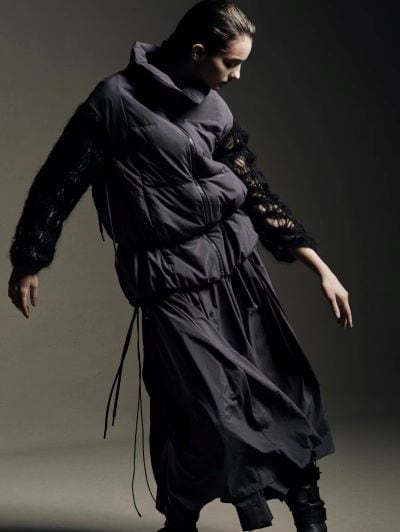 REGULATION Yohji Yamamotoの原点である「制服」の構造を継承しながら、そこにフェミニンという対照的な要素を組み込む。