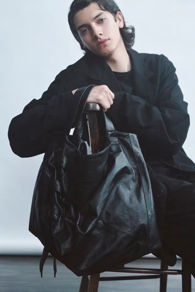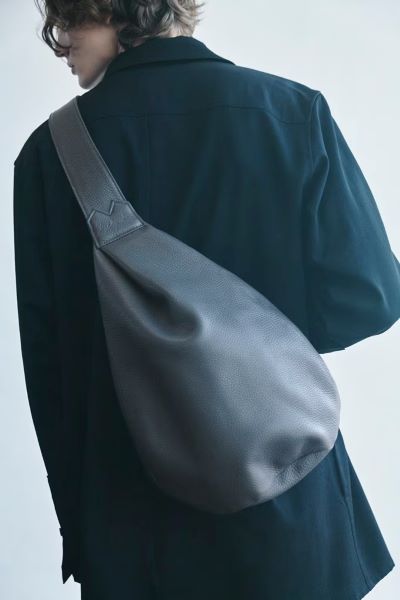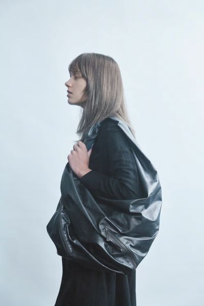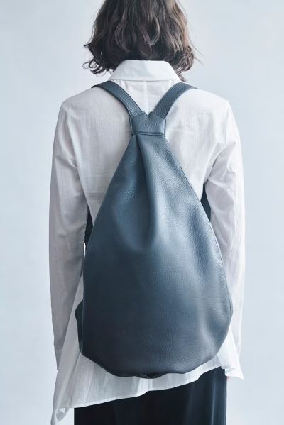 タックのようなデザインディテールと柔らかなシュリンクレザーがドレープを生み、中にものが入った時に美しく、身に着けた時に存在感が出るような、服をつくるように表現されたバッグ。