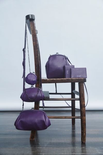 Yohji Yamamoto 2025-26 A/Wコレクションと共鳴する紫色のスモール・レザー・グッズ。