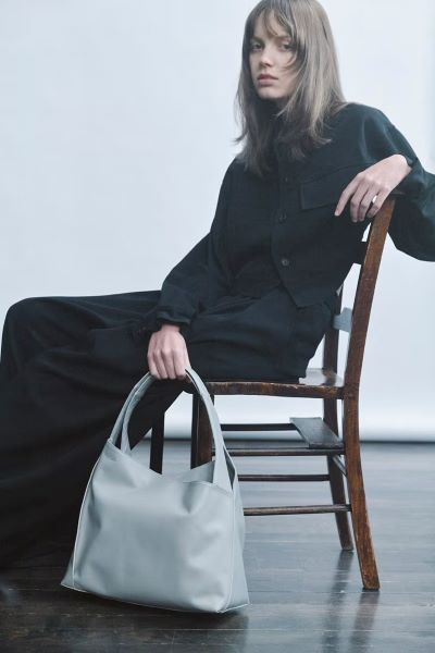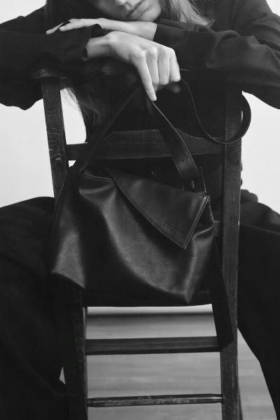 中に物を入れ、持った時に生まれるドレープと、優美なレザードレープがつくる有機的な陰影、幾何学的な丸いラインがユニークなバランスの「ROUND」。