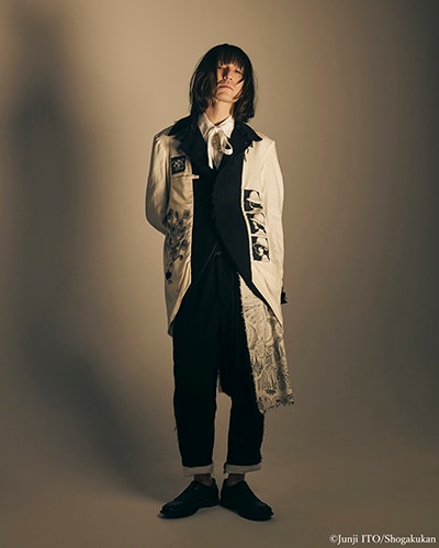 本コレクションを纏うのは、the dresscodesの志磨遼平。伊藤潤二、そして『うずまき』が描く“静かに狂気が広がる世界観”を体現する。