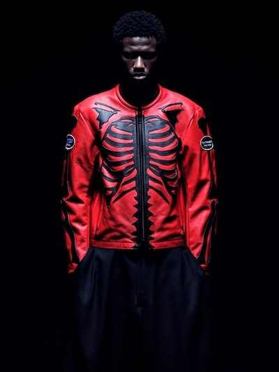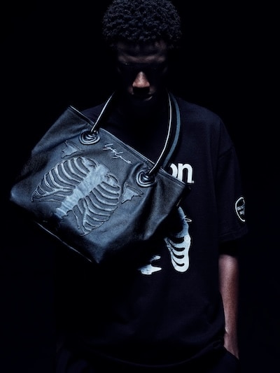 本コレクションでは、VANSONのクラシックなプロダクトをベースに、BONEデザインをYohji Yamamoto POUR HOMMEの視点から再構築したジャケット、バッグ、グローブを展開します。ジャケットはシングルライダースに立体的な骨モチーフのダブルレザーパネルを配置。カラーレスデザイン、フロントジップ、バックル、外ポケット、スリーブ肩位置のオーバルワッペンなどVANSON伝統の仕様を採用しています。BONE柄のトートバッグは、ハンドルの長さを調整し、フロント・バックパネルやレザーパッチの配置を変更した特別仕様。いずれのモデルにもBONEグラフィックとYohji Yamamotoのネームを施しています。ジャケットをご購入いただいた方には、限定ノベルティーとして、BONE TEE SHIRTをご用意しています。