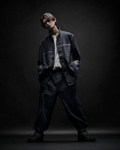 デニムやツイルのハードな生地はワークテイストに仕上げ、カバーオールやワークジャケット、ペインターパンツなどGround Yらしいゆったりとしたシルエットで表現しました。