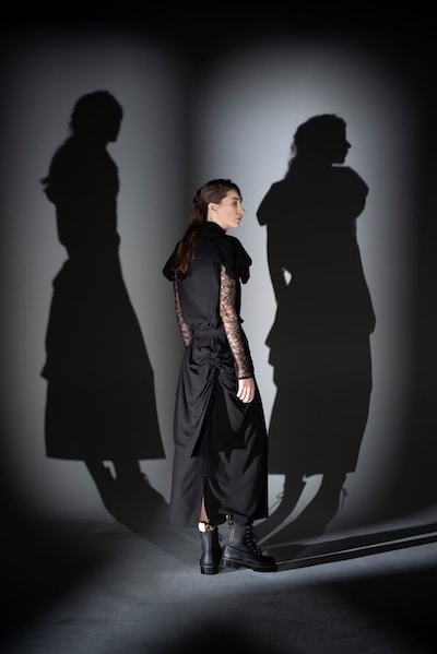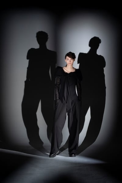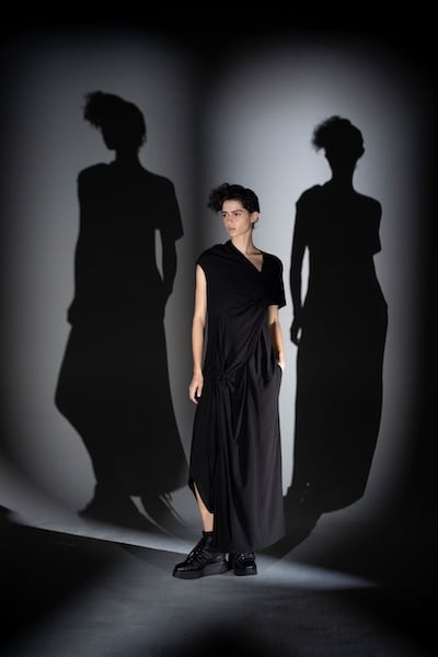 透け感のあるブラウスや、黒でありながらも重さを感じさせない涼しげな素材、陰影を生むドレープが印象的なラインナップ。リボンや紐のディテールが、装いに静かなアクセントを添えます。