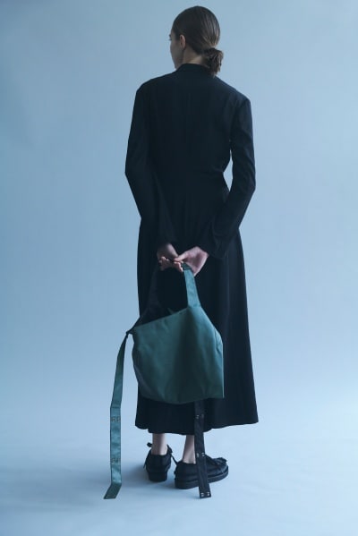 「INFINITE」は、スナップボタンで描かれたドットが特徴のバッグ。ボタンの留め方によってフォルムや見え方に変化が生まれ、装いにさりげないアクセントを添える。Y字の脇ハギによる遊び心ある構造を取り入れ、素材にはツヤ感のあるガーメントレザーと綿ツイルを使用。リバーシブル仕様で、その日のスタイルに合わせて異なる持ち方を楽しめる。